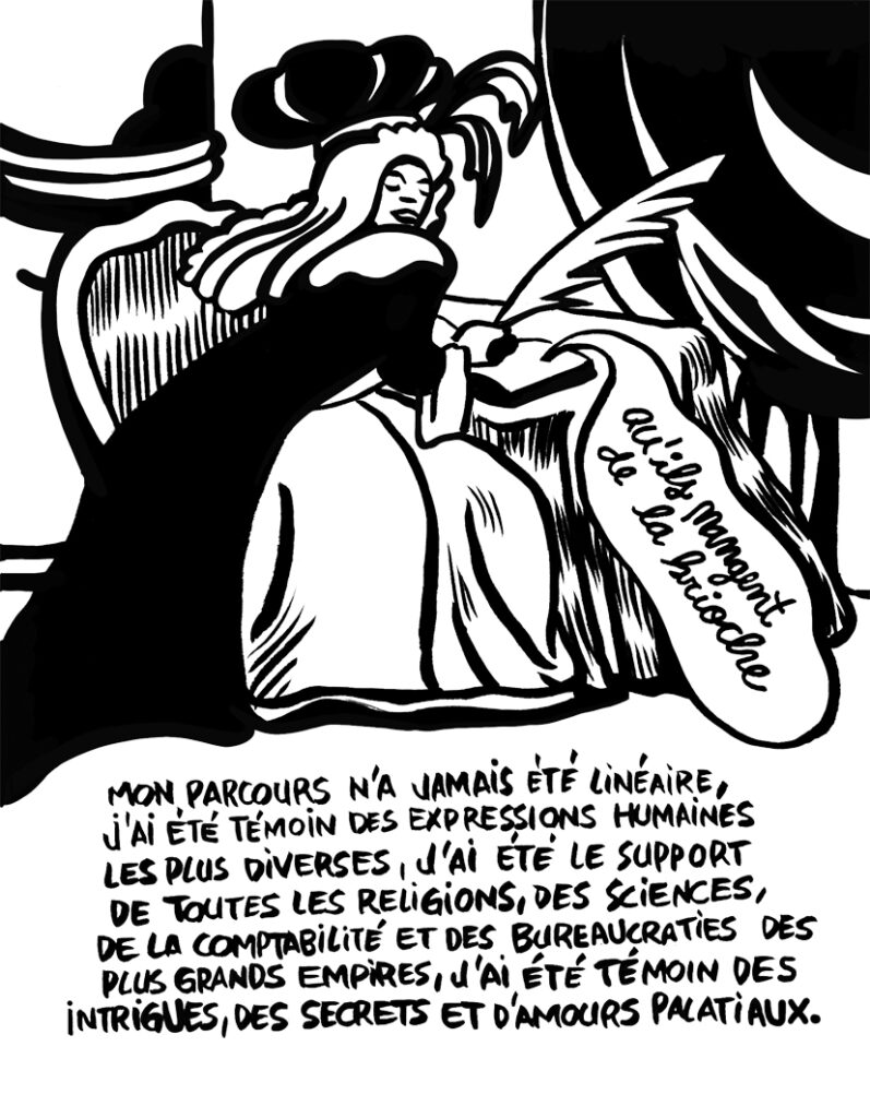 Cette création artistique a été réalisée dans le cadre des activités du réseau culturel de la Route européenne du papier portées par les villes créatives UNESCO d’Angoulême (France), de Fabriano (Italie), de Santa Maria da Feira (Portugal), d’Heidelberg (Allemagne), de Barcelone et de Capellades (Espagne), pour valoriser la tradition papetière européenne, la recherche, le tourisme, l’éducation autour du papier ainsi que la création contemporaine. se présente comme une frise chronologique et géographique, où chaque section correspond à une étape clé de la fabrication et de l’usage du papier en Europe. On y découvre des villes emblématiques comme Fabriano en Italie, berceau de la papeterie médiévale, ou encore Ambert en France, célèbre pour ses moulins à papier. Chaque page est illustrée de dessins, de textes et de motifs inspirés des archives locales, mêlant techniques traditionnelles et approches contemporaines.